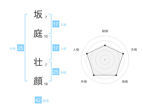 坂庭 壮顔さんを姓名の画数から五運を鑑定