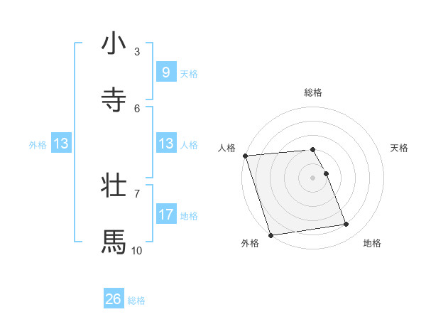 小寺 壮馬さんを姓名の画数から五運を鑑定