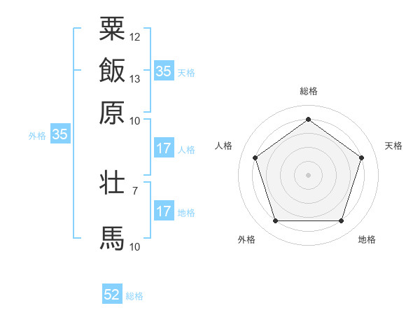粟飯原 壮馬さんの総格は52画の4点!