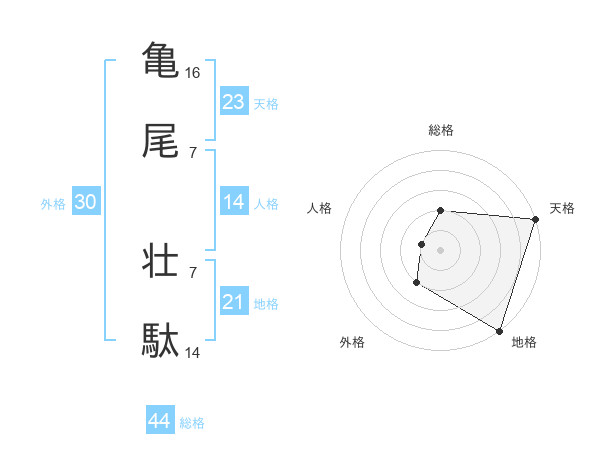 亀尾 壮駄さんの総格は44画の2点!