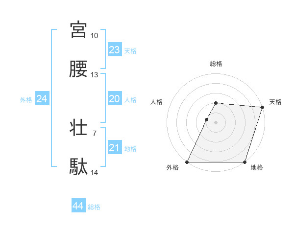 宮腰 壮駄さんを姓名の画数から五運を鑑定