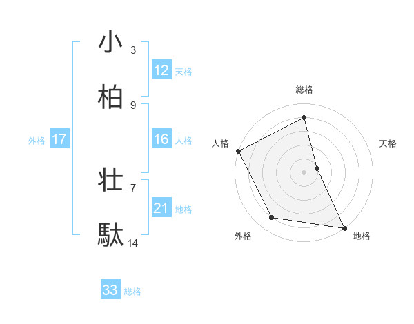 小柏 壮駄さんの総格は33画の4点!