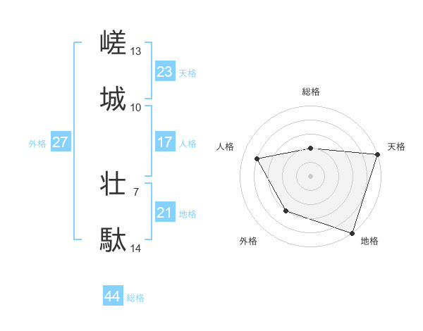 嵯城 壮駄さんを姓名の画数から五運を鑑定