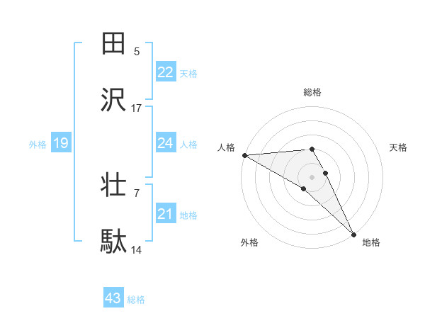 田沢 壮駄さんを姓名の画数から五運を鑑定