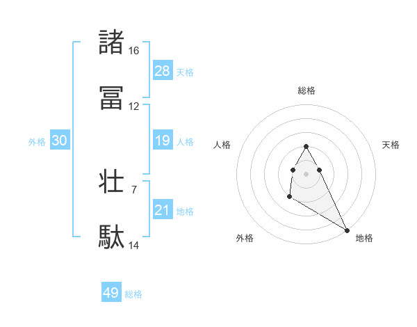 諸冨 壮駄さんを姓名の画数から五運を鑑定