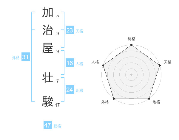 加治屋 壮駿さんを姓名の画数から五運を鑑定