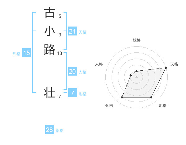古小路 壮さんの天格は21画の5点!