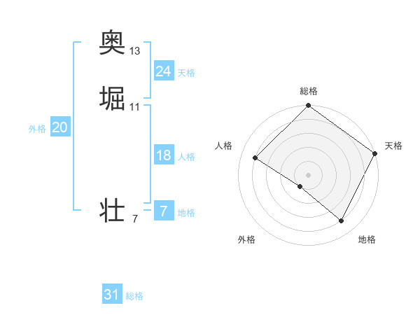 奥堀 壮さんの天格は24画の5点!