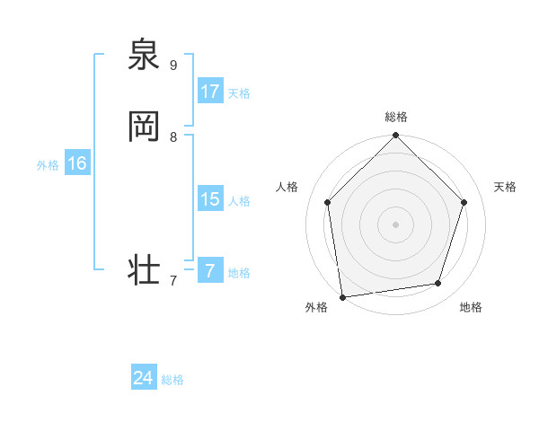 泉岡 壮さんの総格は24画の5点!
