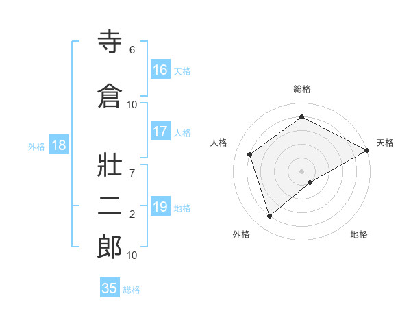 寺倉 壯二郎さんを姓名の画数から五運を鑑定