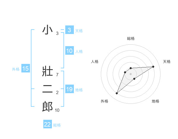 小 壯二郎さんを姓名の画数から五運を鑑定