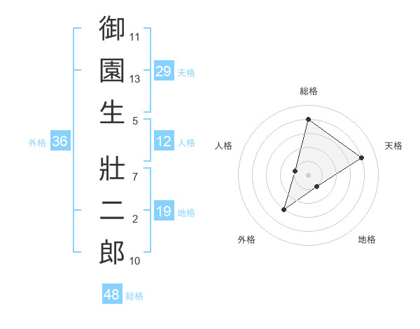 御園生 壯二郎さんの総格は48画の4点!