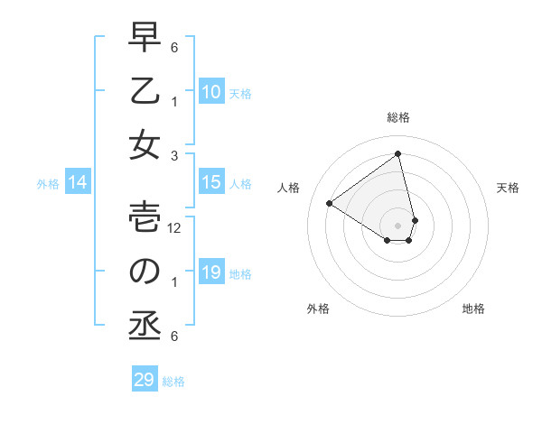 早乙女 壱の丞さんの総格は29画の4点!