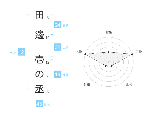田邊 壱の丞さんを姓名の画数から五運を鑑定