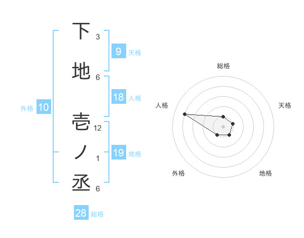 下地 壱ノ丞さんの総格は28画の1点!
