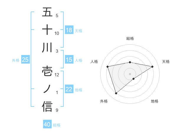 五十川 壱ノ信さんの天格は18画の4点!