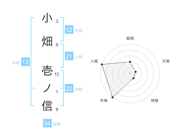 小畑 壱ノ信さんを姓名の画数から五運を鑑定