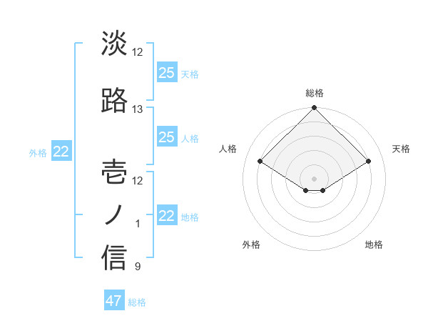 淡路 壱ノ信さんの総格は47画の5点!