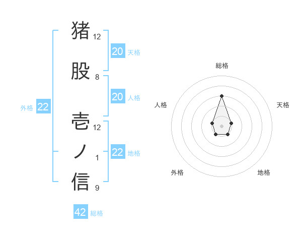 猪股 壱ノ信さんの外格は22画の1点!