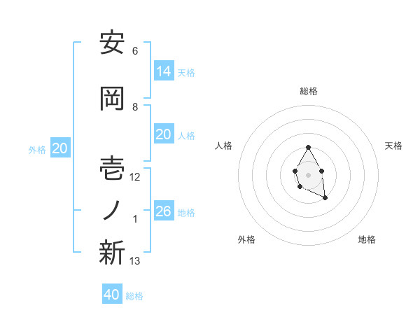 安岡 壱ノ新さんを姓名の画数から五運を鑑定