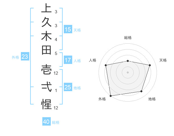 上久木田 壱弌惺さんを姓名の画数から五運を鑑定