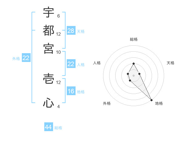 宇都宮 壱心さんを姓名の画数から五運を鑑定
