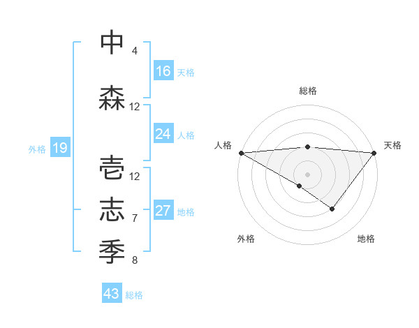 中森 壱志季さんを姓名の画数から五運を鑑定