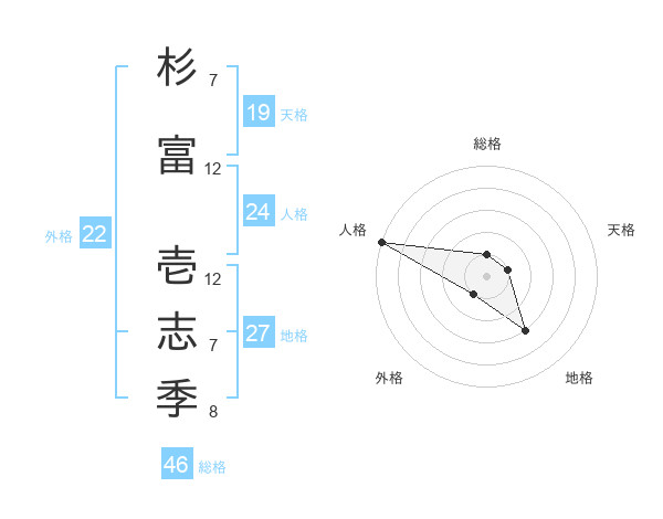 杉富 壱志季さんの総格は46画の1点!