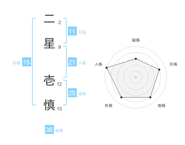 二星 壱慎さんを姓名の画数から五運を鑑定