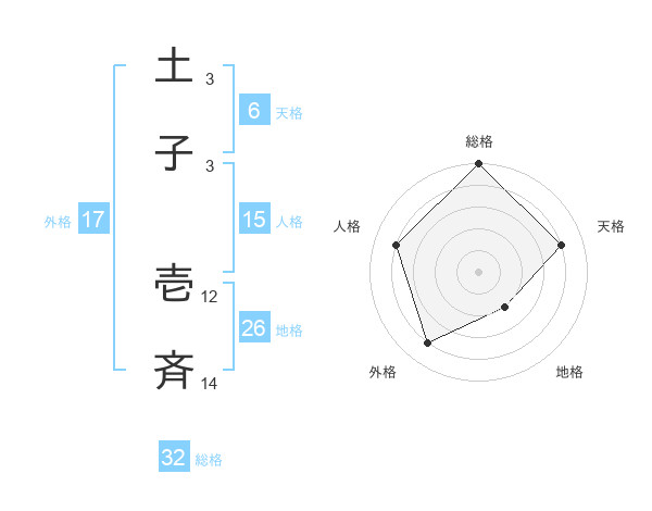 土子 壱斉さんの総格は32画の5点!