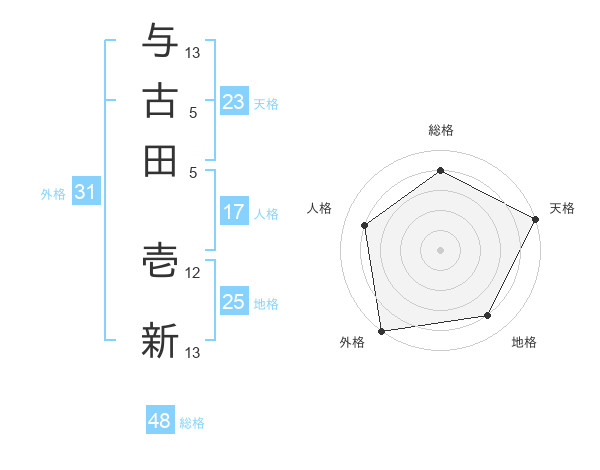 与古田 壱新さんの天格は23画の5点!