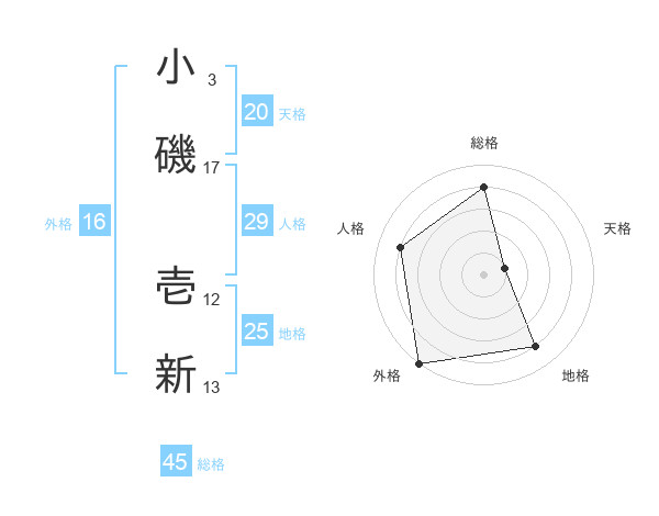 小磯 壱新さんを姓名の画数から五運を鑑定