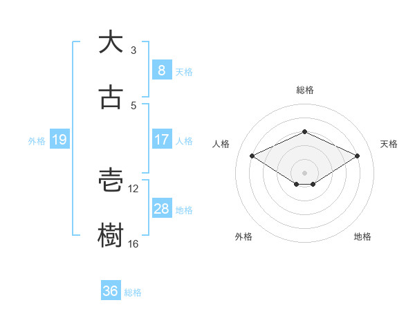 大古 壱樹さんを姓名の画数から五運を鑑定