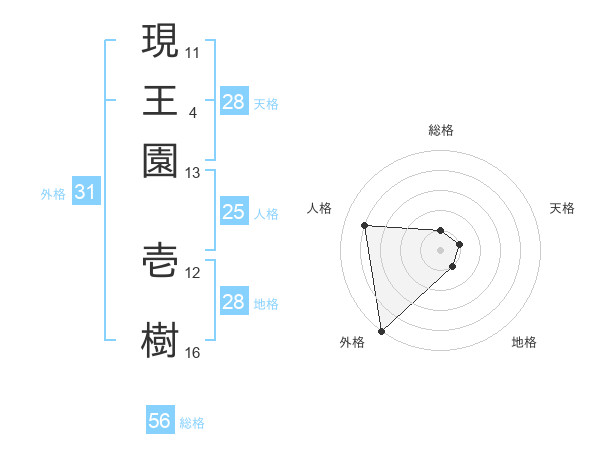 現王園 壱樹さんの外格は31画の5点!