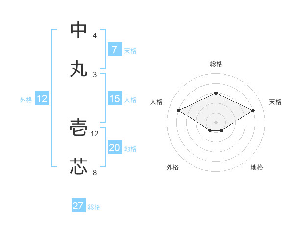 中丸 壱芯さんを姓名の画数から五運を鑑定