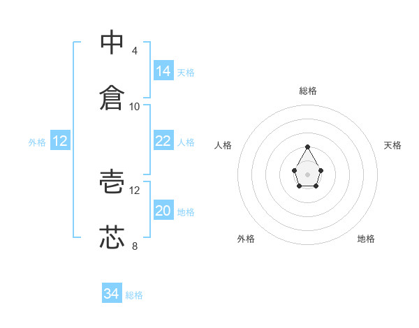中倉 壱芯さんを姓名の画数から五運を鑑定