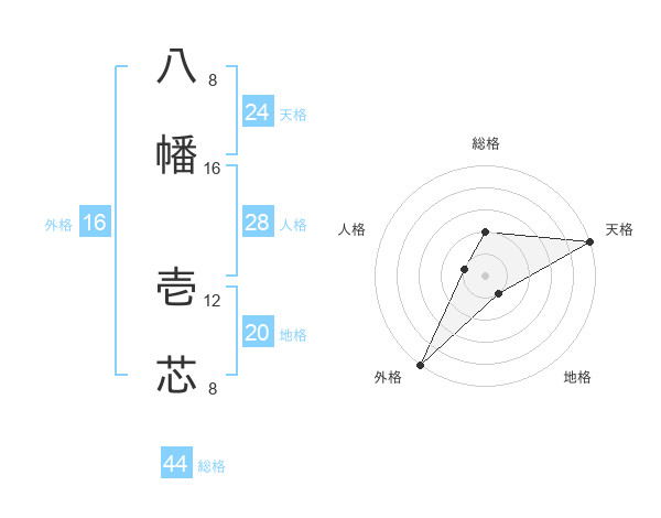 八幡 壱芯さんの総格は44画の2点!