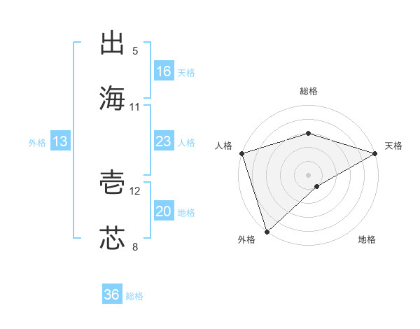 出海 壱芯さんを姓名の画数から五運を鑑定