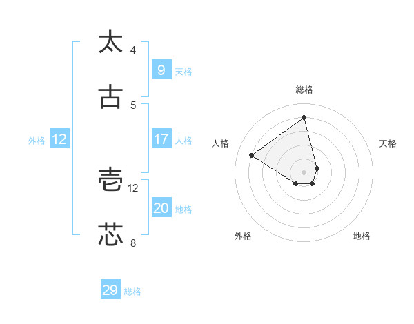 太古 壱芯さんの総格は29画の4点!