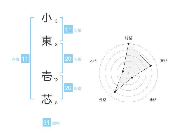 小東 壱芯さんを姓名の画数から五運を鑑定