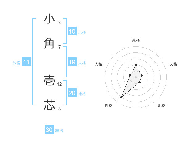 小角 壱芯さんの地格は20画の1点!