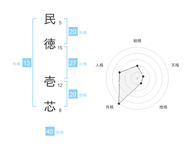 民徳 壱芯さんを姓名の画数から五運を鑑定