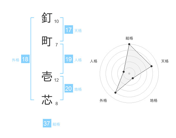 釘町 壱芯さんの総格は37画の5点!