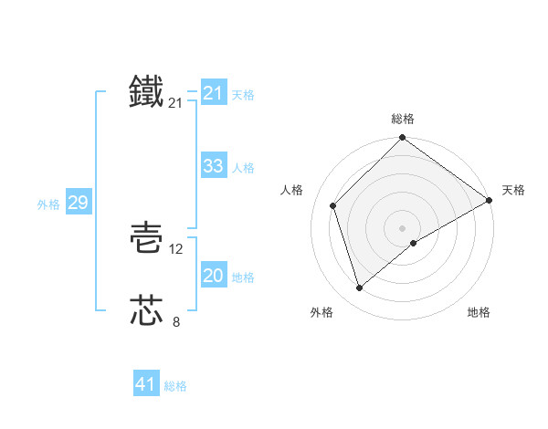 鐵 壱芯さんを姓名の画数から五運を鑑定