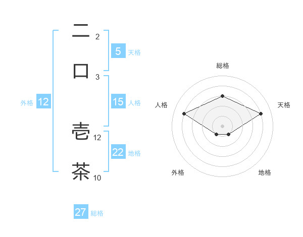 二口 壱茶さんを姓名の画数から五運を鑑定