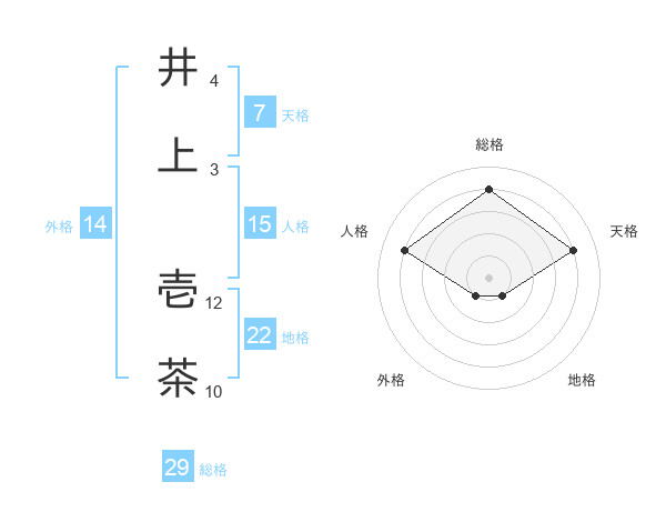 井上 壱茶さんを姓名の画数から五運を鑑定