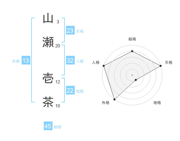 山瀬 壱茶さんを姓名の画数から五運を鑑定