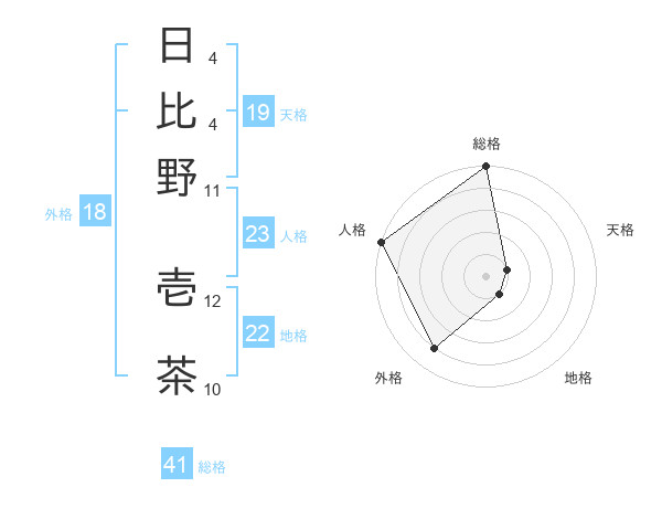 日比野 壱茶さんを姓名の画数から五運を鑑定