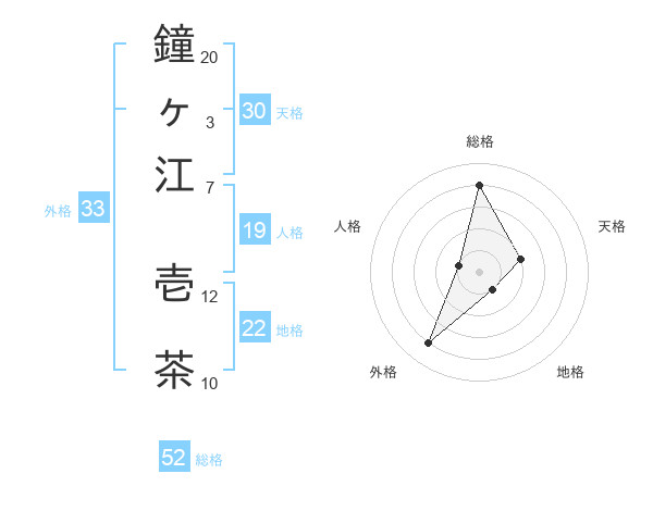 鐘ヶ江 壱茶さんの総格は52画の4点!