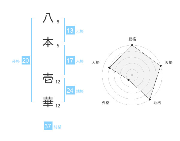 八本 壱華さんの総格は37画の5点!